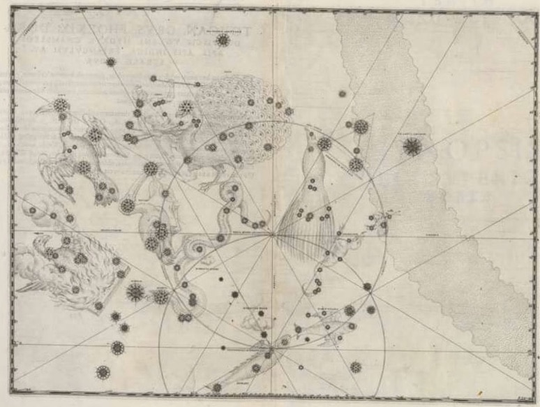 The story doesn’t end there; the complicating factor is trying to unpick how the Pavo stars got catalogued and named, ultimately making it into Bayer’s Uranometria. The discussion must also include Frederick de Houtmann, who was on the same voyage as Keyser and also on a subsequent journey. During these voyages, he claimed to have measured the data he later published in his catalogue of stars as an appendix to a dictionary on the Malaysian and Malagasy languages (Verbunt & Gent, 2011, p. 1).